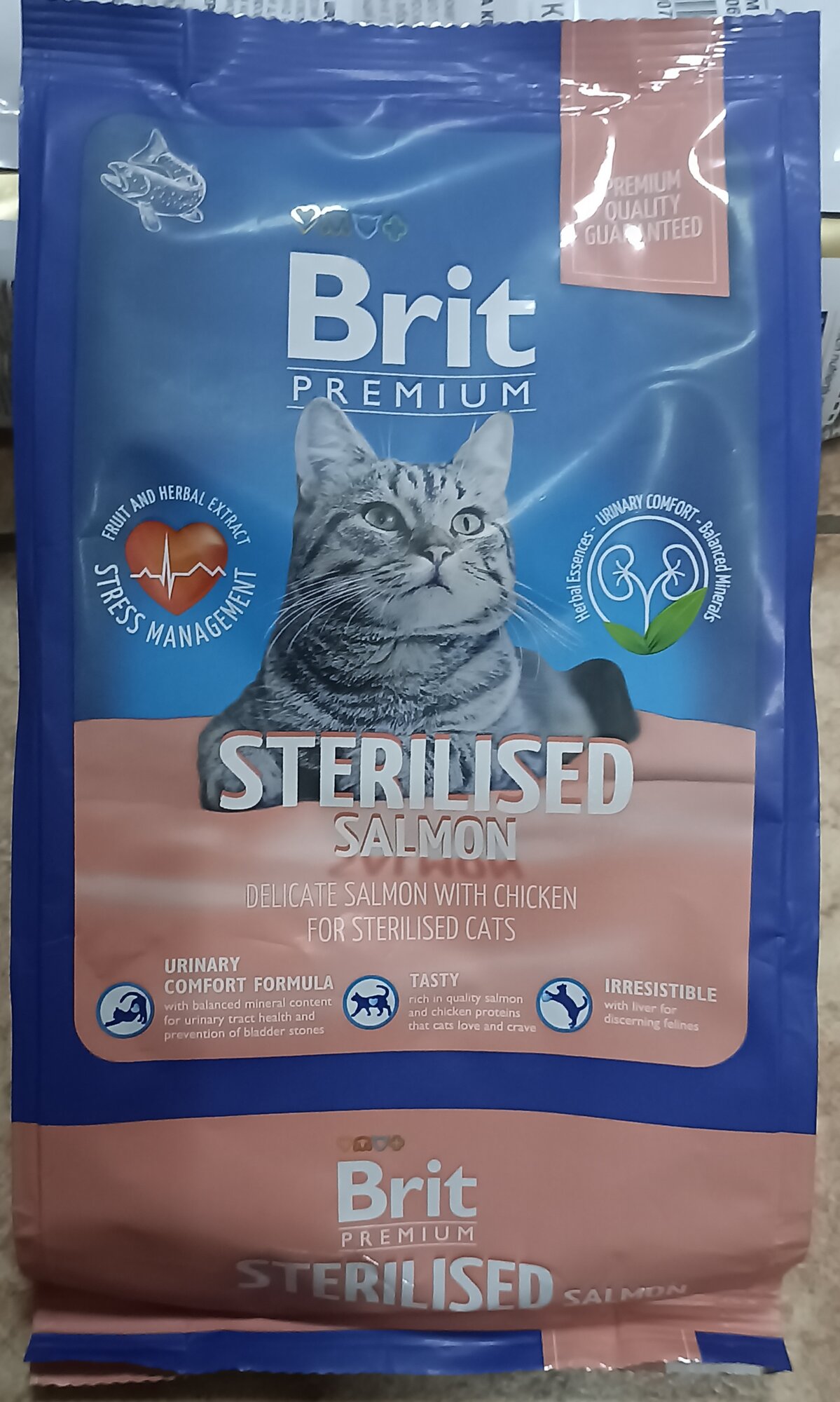 Брит Премиум Cat Sterilised Salmon & Chicken 8кг лосось и курица для взр.стерил.кошек