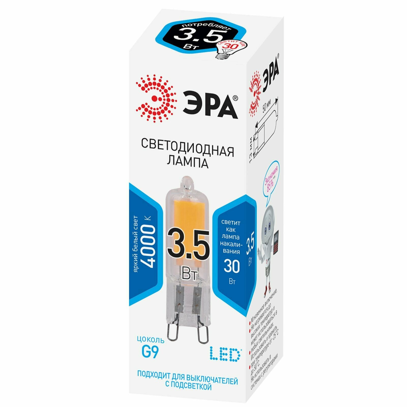 ЭРА LED JCD-3,5W-CER-840-G9 (диод, капсула, 3,5Вт, нейтр, G9)