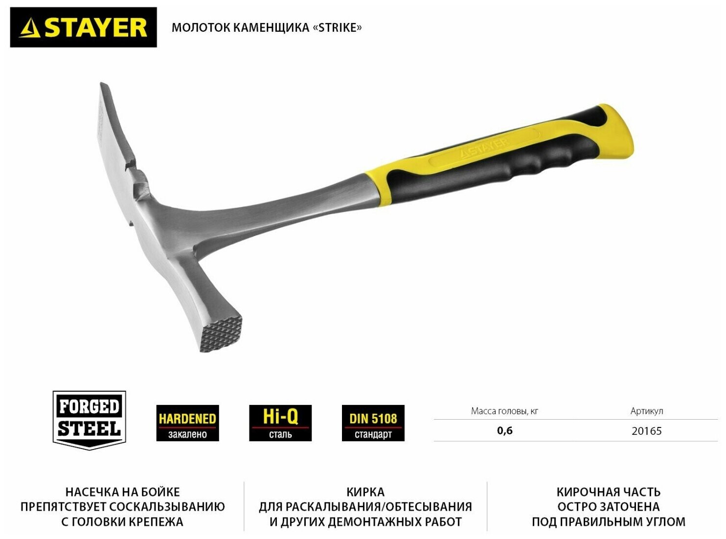 STRIKE 600 г цельнометаллический молоток каменщика, STAYER 20165