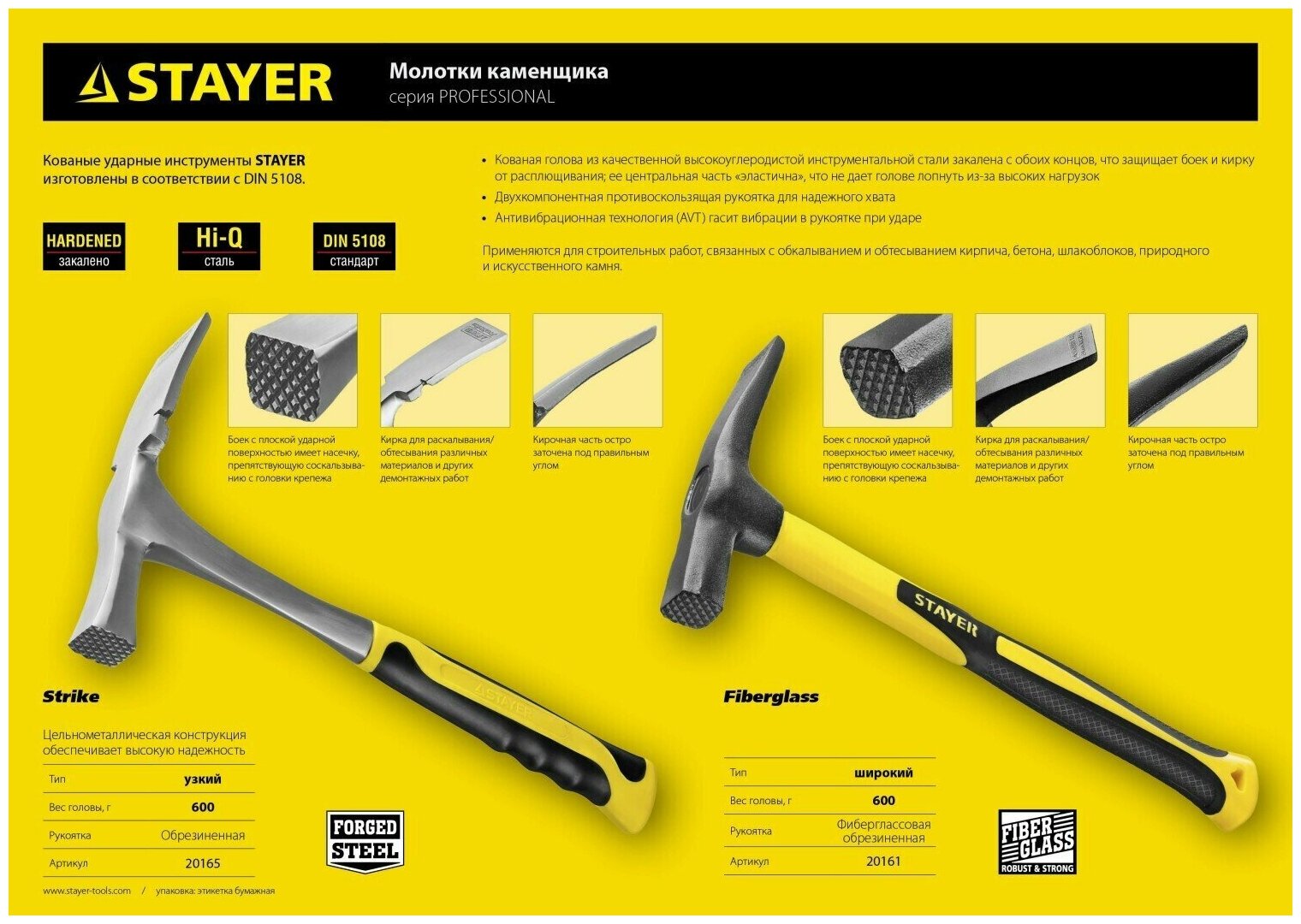 Цельнометаллический молоток каменщика, STAYER STRIKE 20165