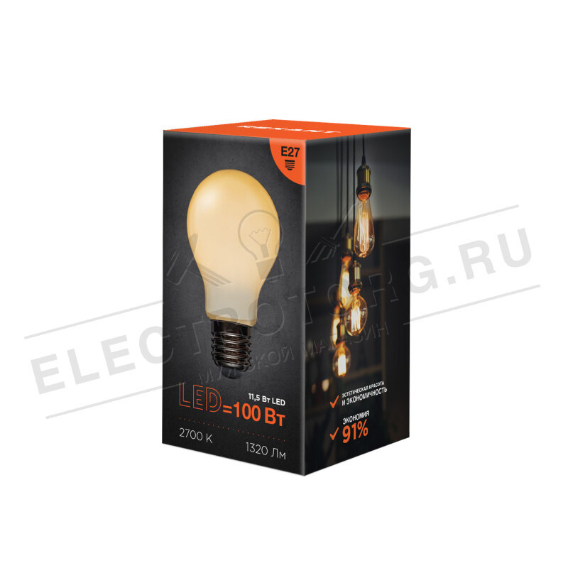 Филаментная лампа REXANT Груша A60 11.5 Вт 2700K E27 матовая колба 604-078