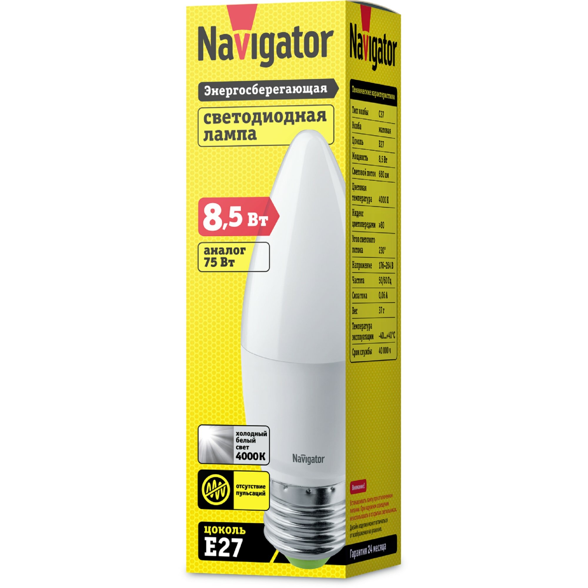 СохранитьСветодиодная лампа Navigator NLL-C37-8.5-230-4К-E27-FR интересное: