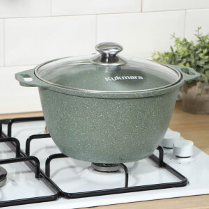 Кастрюля Kukmara Мраморная 4л с антипригарным покрытием фисташковый мрамор со стеклянной крышкой