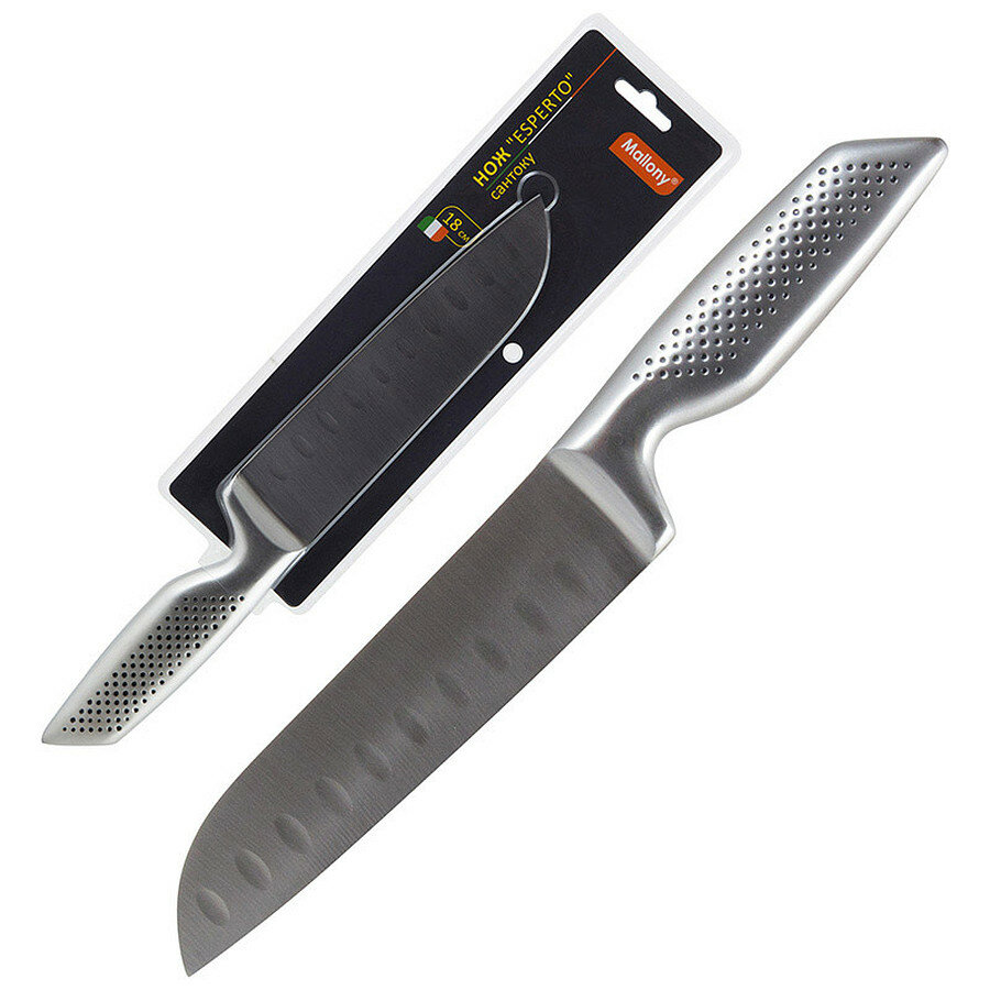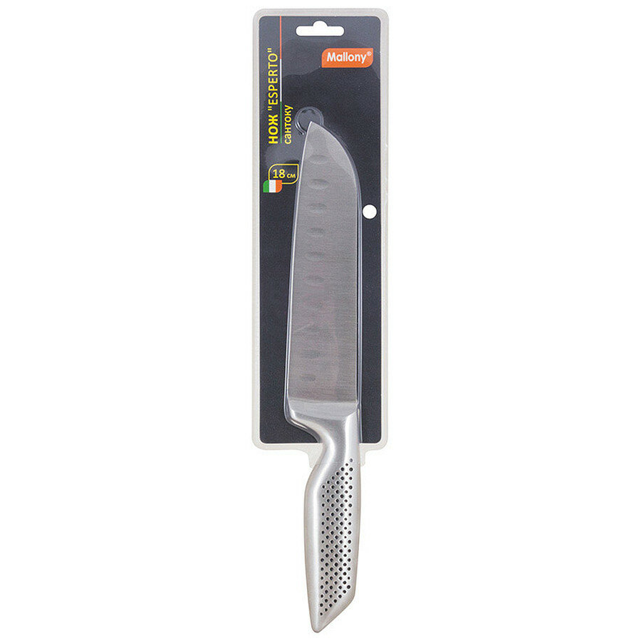 Нож кухонный Сантоку Mallony ESPERTO MAL-08ESPERTO цельнометаллический, 18 см