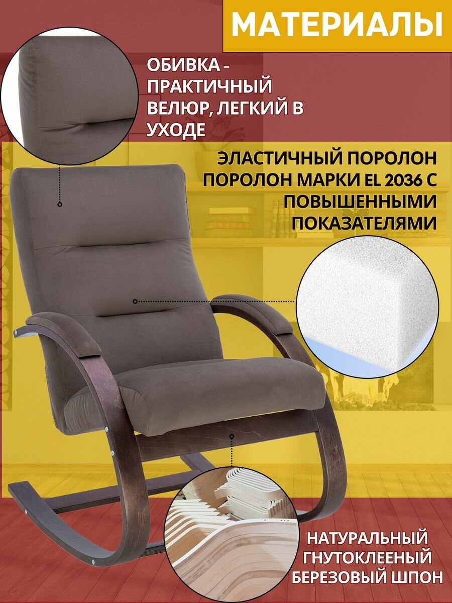 Кресло качалка, кресло для отдыха Милано, Орех текстура, велюр V 23