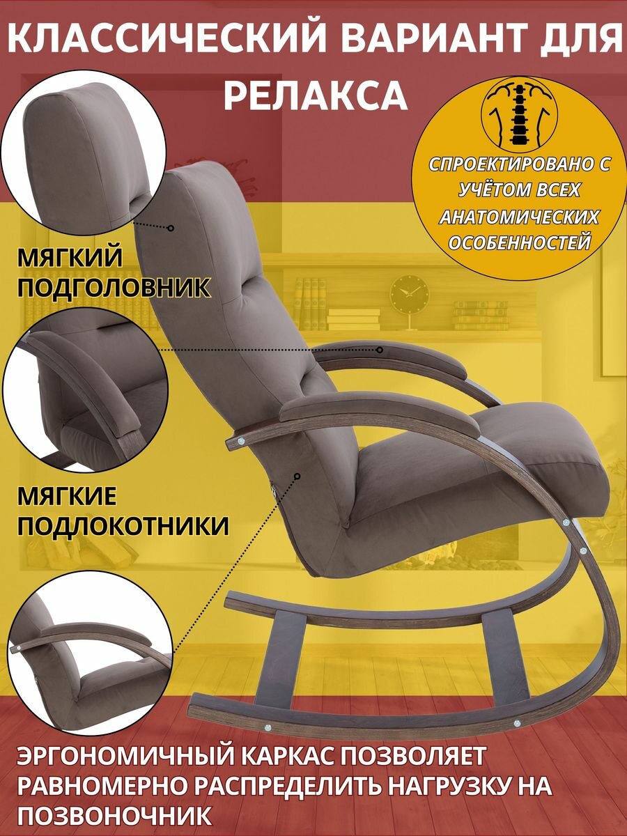 Кресло качалка, кресло для отдыха Милано, Орех текстура, велюр V 18