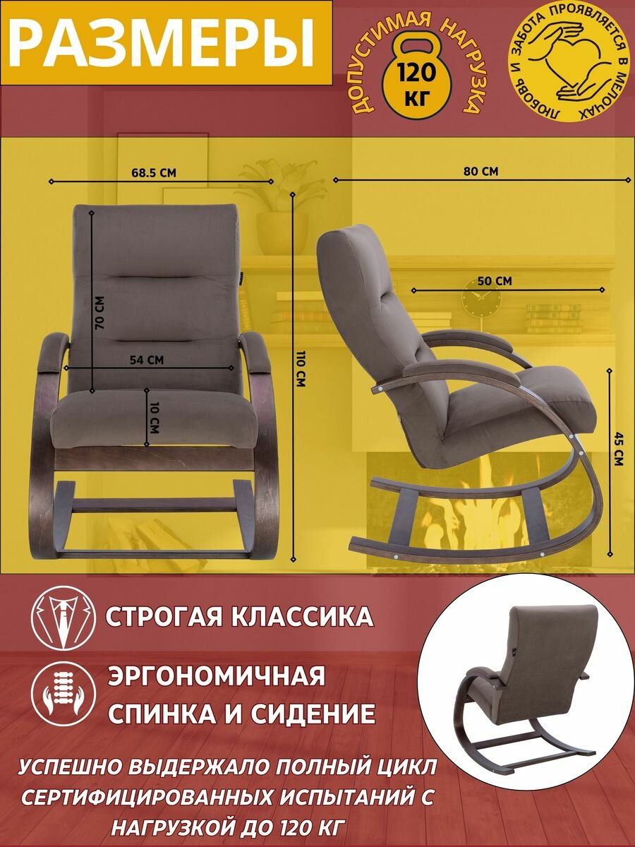 Кресло качалка, кресло для отдыха Милано, Венге, велюр V 14