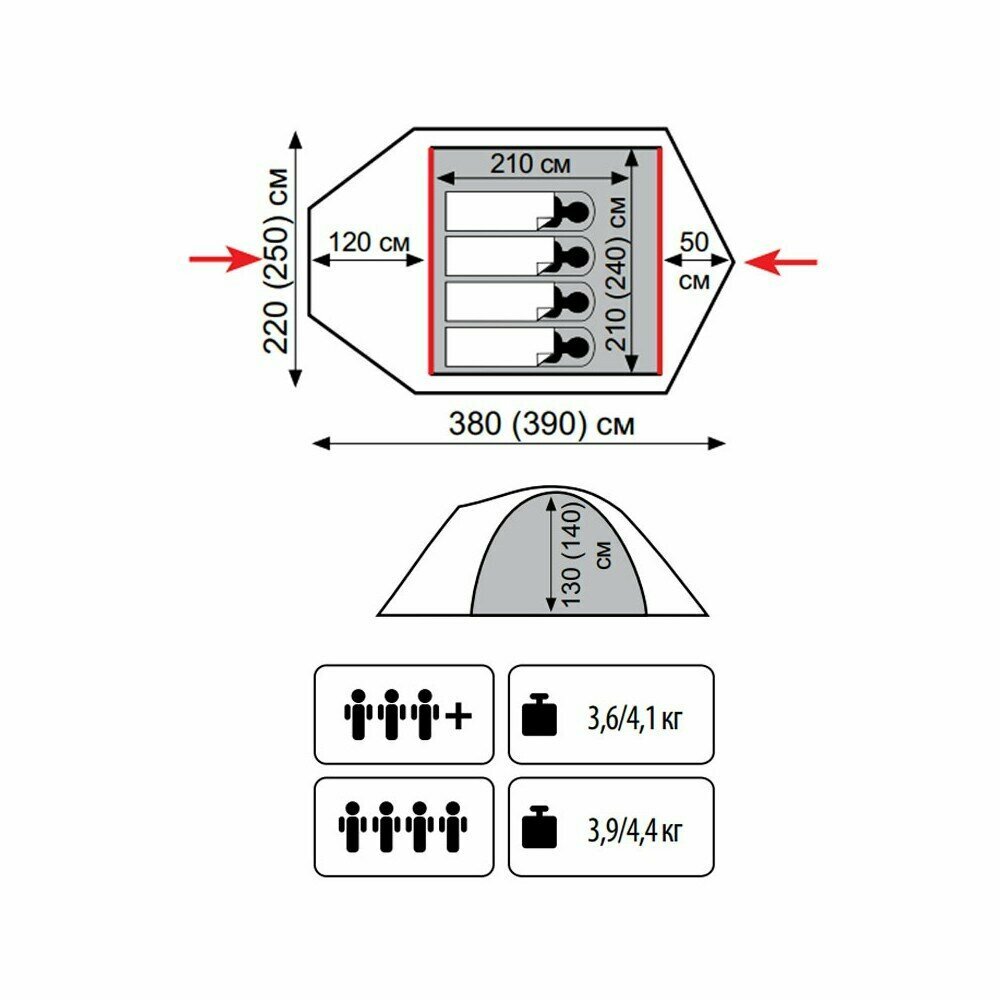 | Водостойкость тента/дна | 4000 / 10000 мм в.ст. |