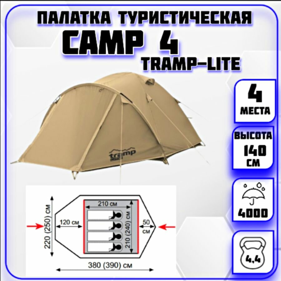 Палатка 4-местная Camp 4 Tramp-Lite (песок) интересное: