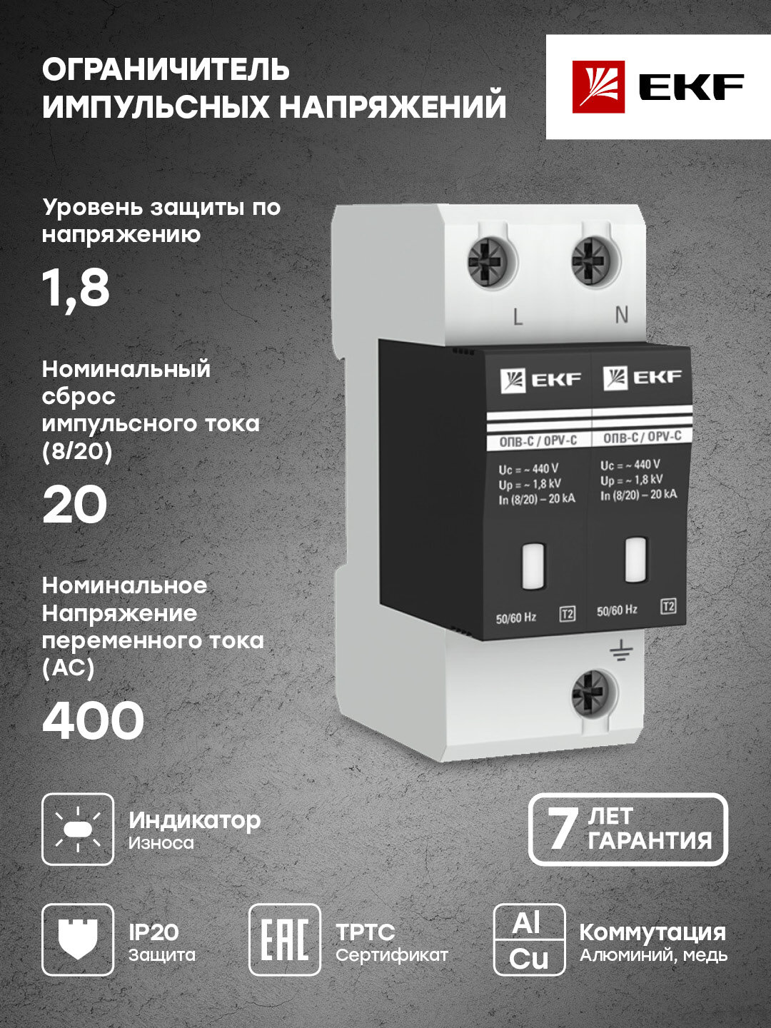 СохранитьОграничитель импульсных напряжений EKF ОПВ-C/2P In интересное: