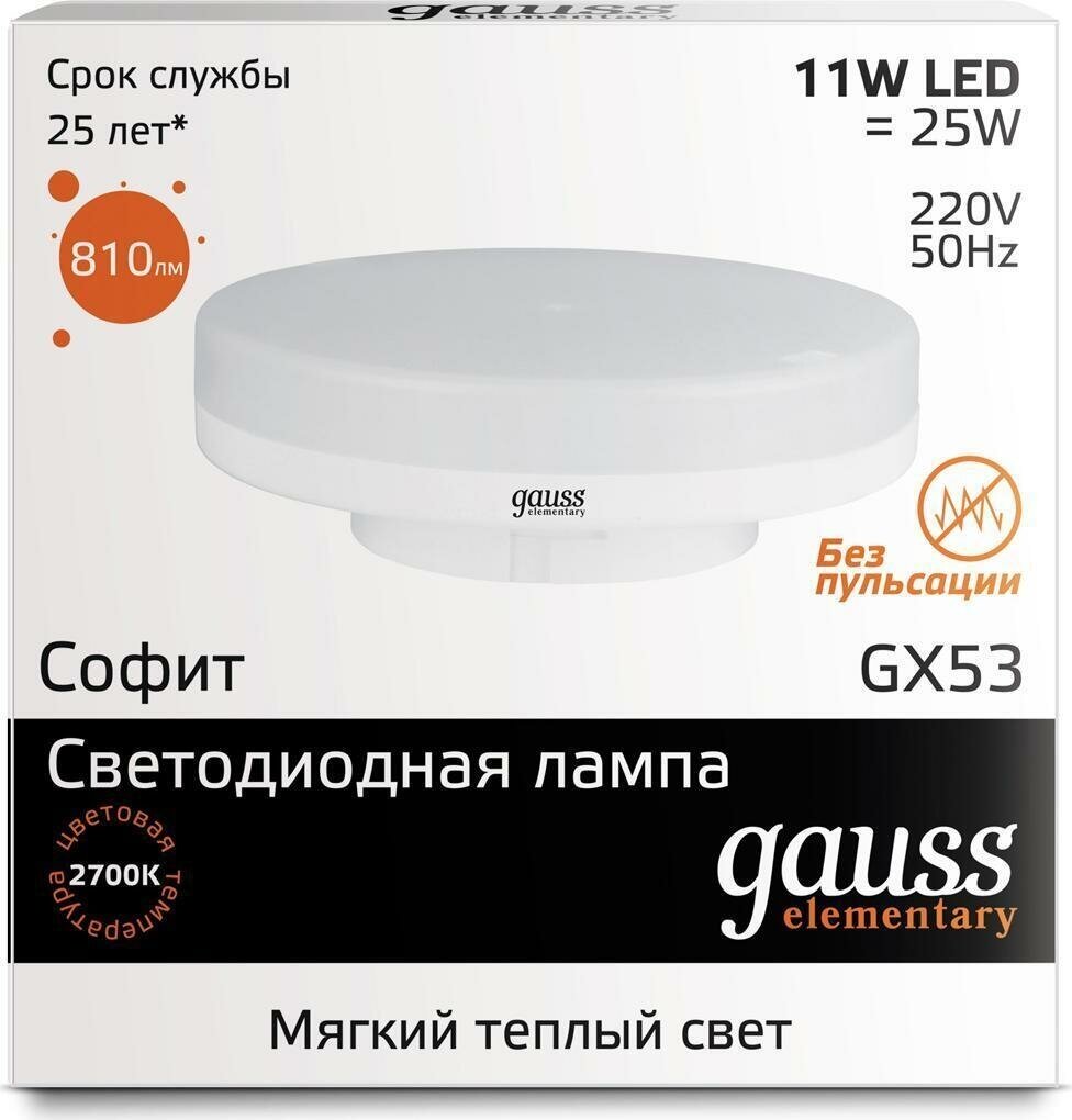 Gauss Лампа LED Elementary GX53 11W 810lm 3000K SQ83811