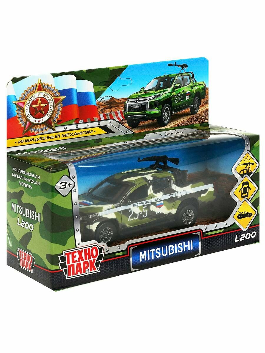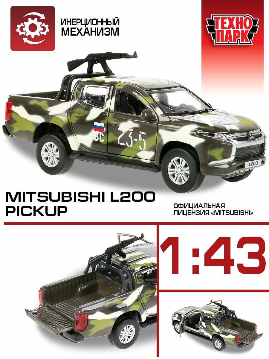 Модель машины Технопарк Mitsubishi L200 пикап, армейский, в камуфляже, инерционная L200-12МIL-АRМGN