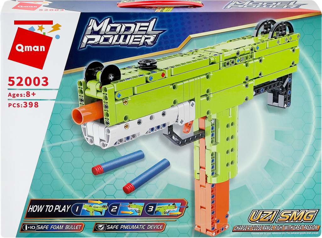 Конструктор Qman 52003 Пистолет Uzi SMG с пневмо механизмом 398 дет. 43х32х7 см