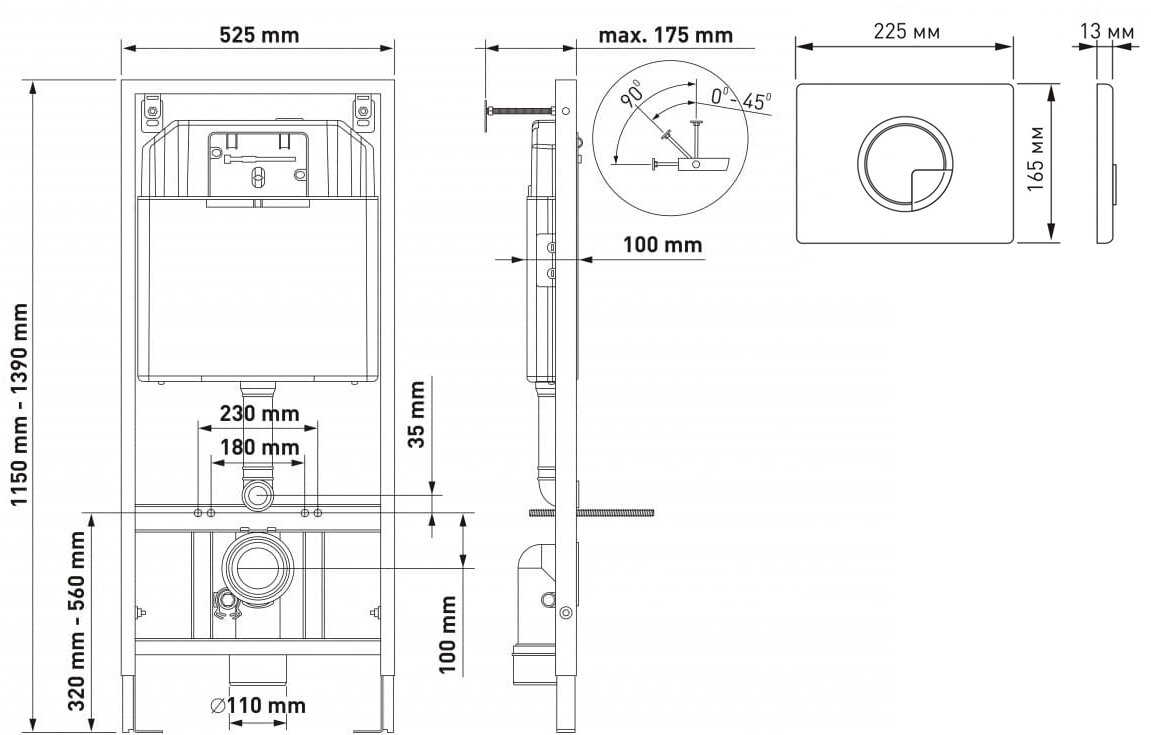 Berges Wasserhaus Комплект унитаза с инсталляцией Novum Rimless 043268 с сиденьем Микролифт и Черной клавишей смыва
