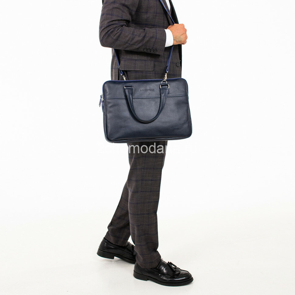 Мужская кожаная деловая сумка Lakestone Anson Dark Blue 926008/DB интересное: