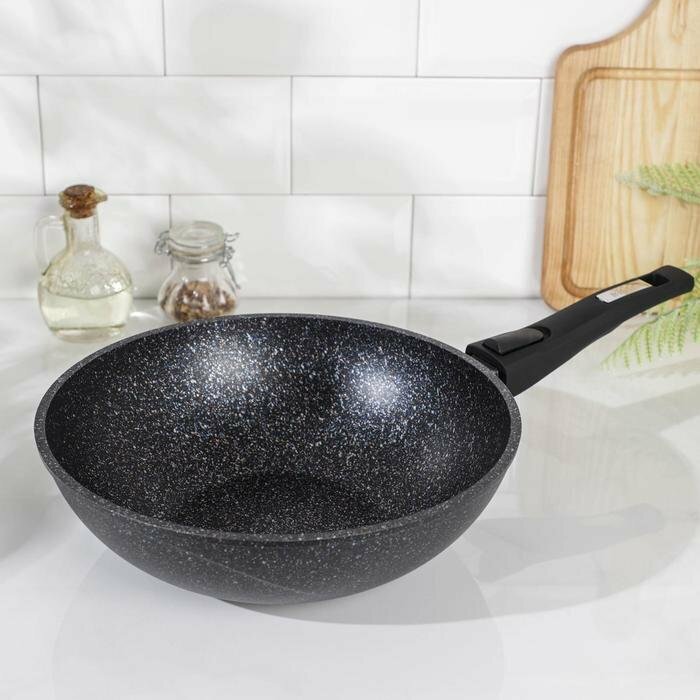 Мечта Сковорода-ВОК "Гранит", d28 см, съёмная ручка, цвет гранит