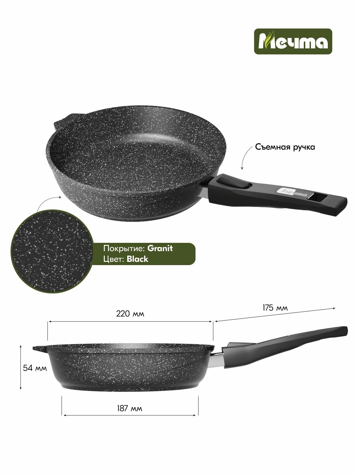 Сковорода Мечта Гранит black (018802), 18 см, съемная ручка