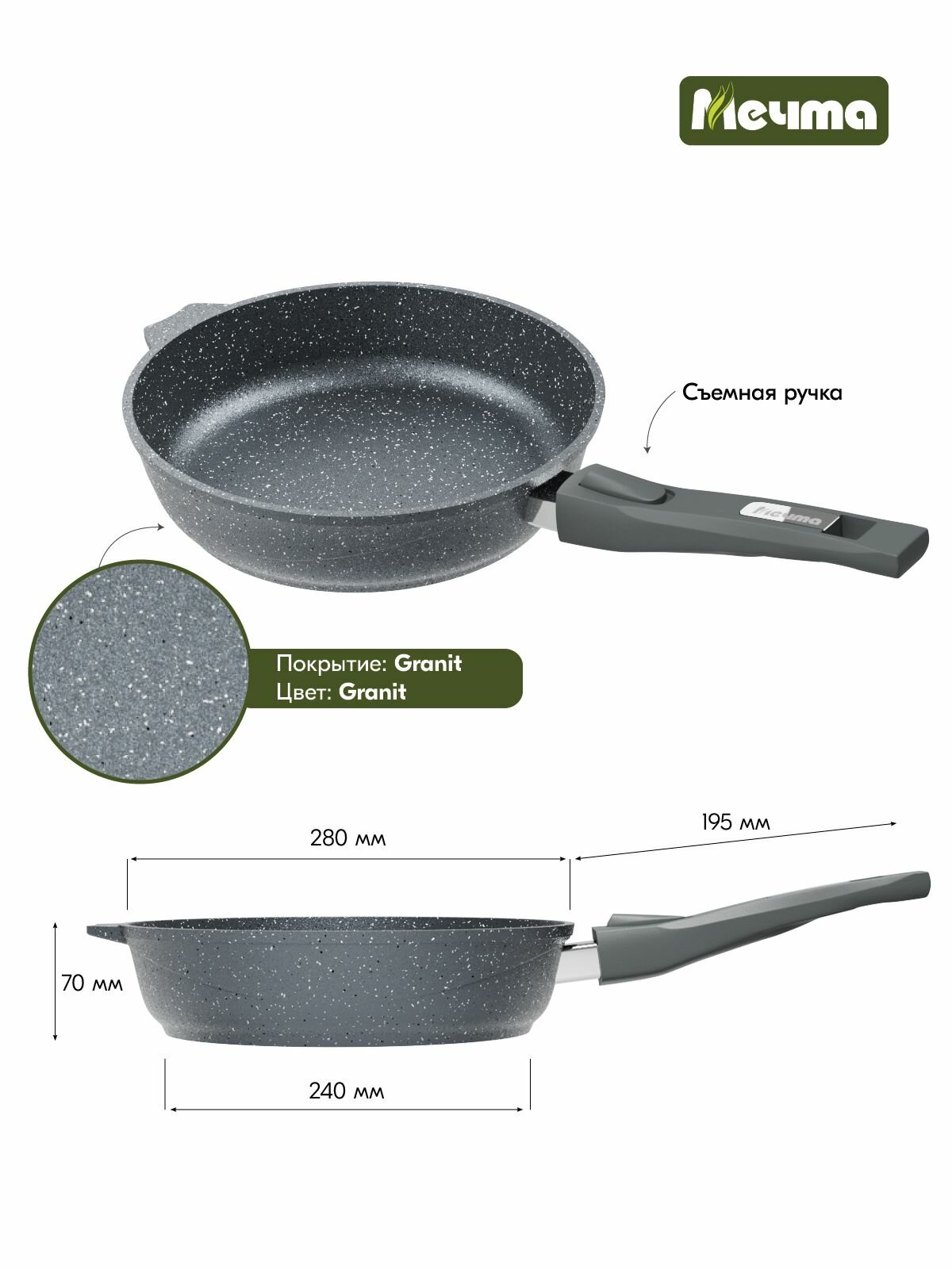 Сковорода индукционная с антипригарным покрытием 26 см со съемной ручкой Гранит Black Мечта