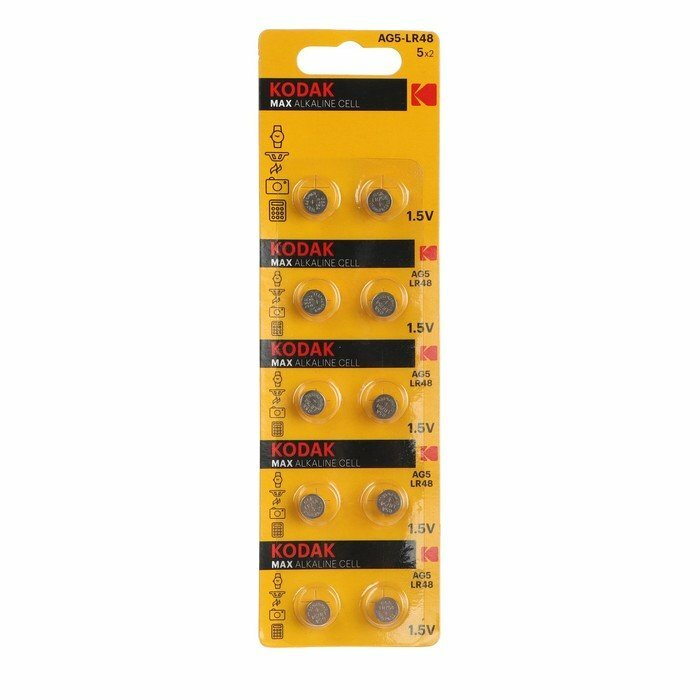 Ниже Вы можете прочитать отзывы на Батарейки Kodak AG5 (393) LR754, LR48 [KAG5-10] MAX Button Cell арт. Б0044710 (10 шт.), ознакомится с подробными характеристиками, посмотреть интересные обзоры и фотографии на Батарейки Kodak AG5 (393) LR754, LR48 [KAG5-10] MAX Button Cell арт. Б0044710 (10 шт.).