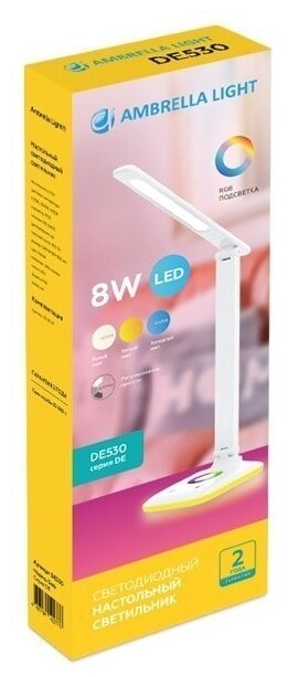 Светодиодная настольная лампа с RGB подсветкой DE530 WH Ambrella белый LED 3000-6400K+RGB 8W