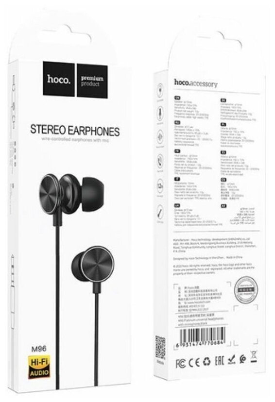 Наушники M96, Platinum universal headphones, HOCO, вакуумные, черные интересное: