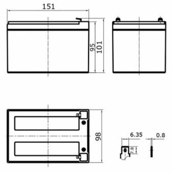 Delta UPS HR 12-9 (12V / 9Ah) Батарея DELTA серия HR, HR 12-9, напряжение 12В, емкость 9Ач (разряд 20 часов), макс. ток разряда (5 сек.) 135А, макс. ток заряда 2.7А, свинцово-кислотная типа AGM, клеммы F2, ДxШxВ 151х65х94мм., вес 2.78кг., срок службы 8 ле