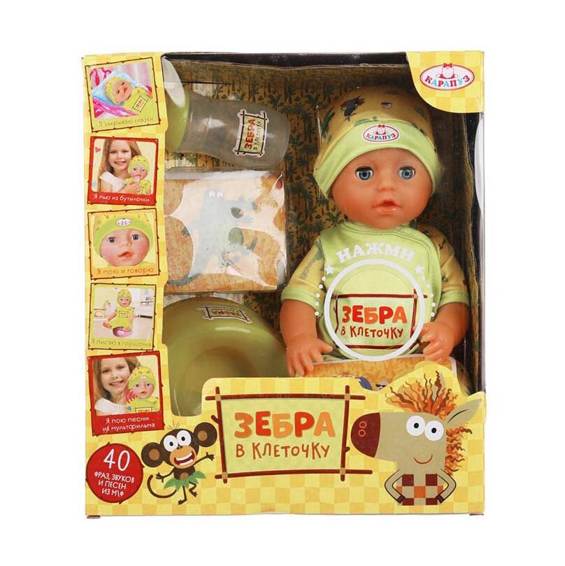 Купить Карапуз Пупс озвученный Зебра в клеточку 25см Карапуз Y25BB-DP-ZEBRA-RU