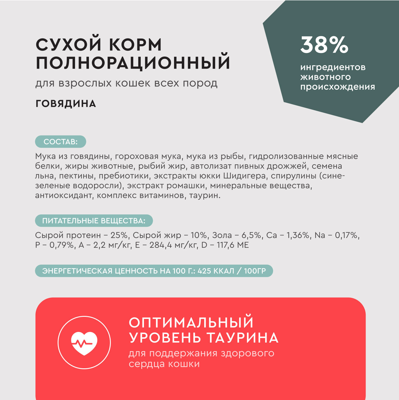 Сухой корм для кошек, 1,8 кг, беззерновой с говядиной, гипоаллергенный