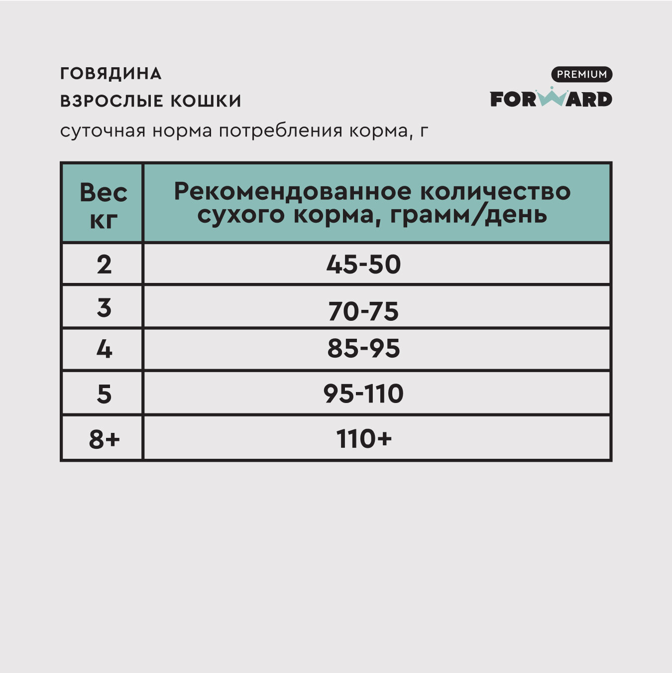 | Дозировка | Суточная норма корма зависит от веса питомца (от 35 г до 119 г), подробная информация на фото и на упаковке товара. |
