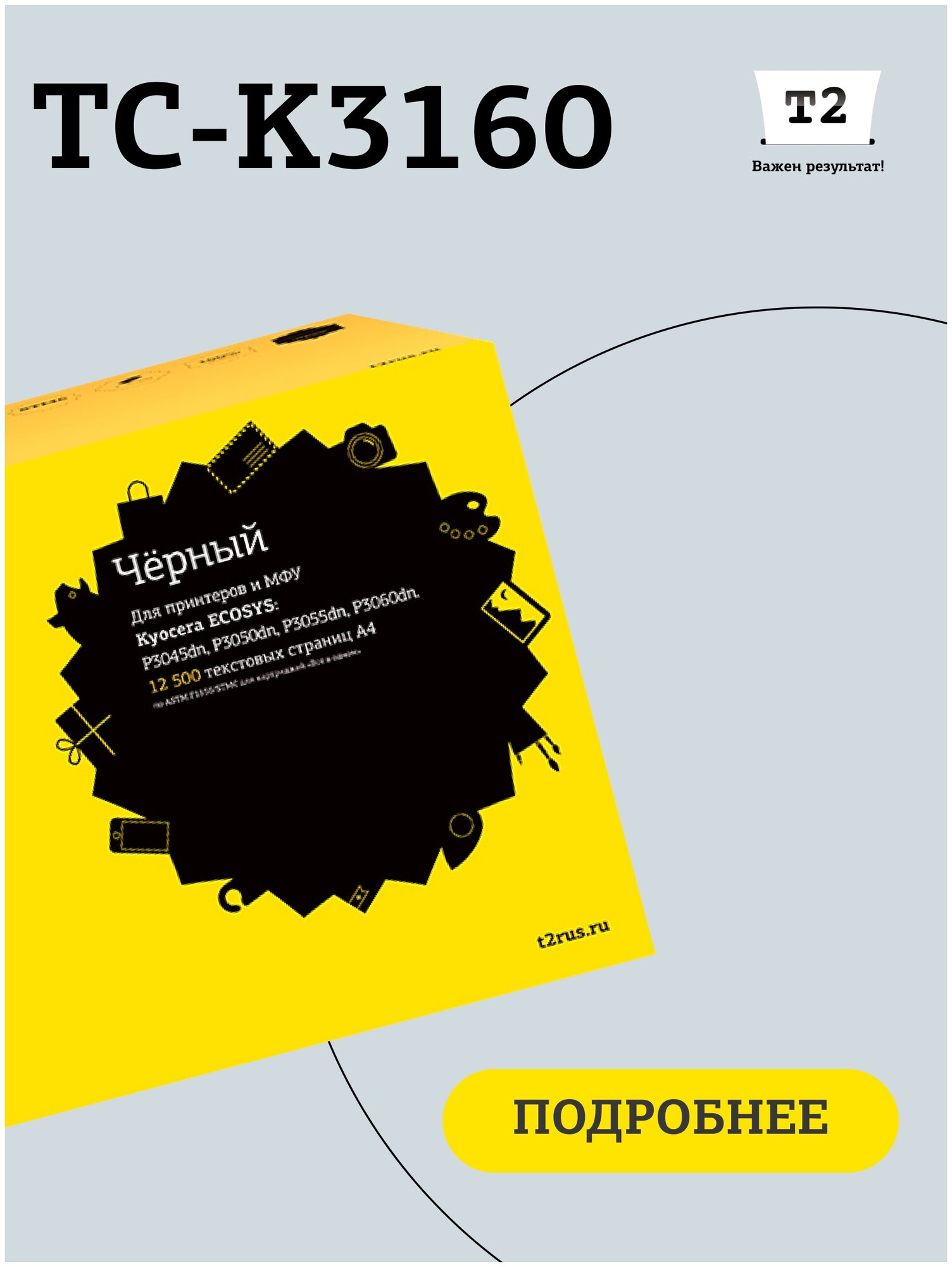 T2 Расходные материалы TK-3160 Картридж TC-K3160 с чипом для Kyocera для ECOSYS P3045dn 3050dn 3055dn 3060dn 12500k