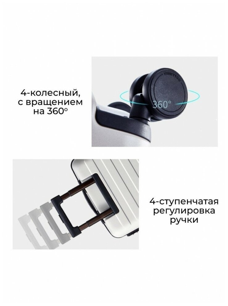 Чемодан Xiaomi NINETYGO Danube 20", серый, пластиковый, 4 колеса, блокировка замков для безопасности