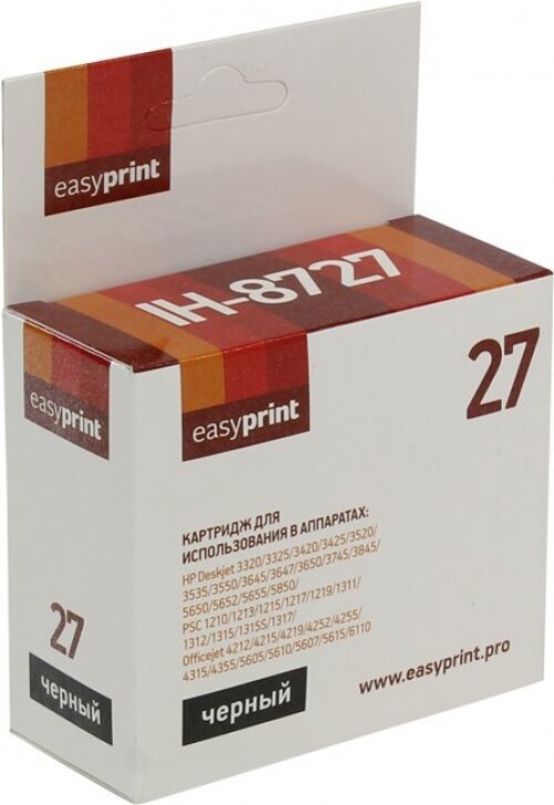 Картридж EasyPrint IH-8727 №27 для HP Deskjet 3320/3420/3520/3650/5650/5850/PSC 1210/1315/Officejet 4215/4315/5610/5615/6110, черный