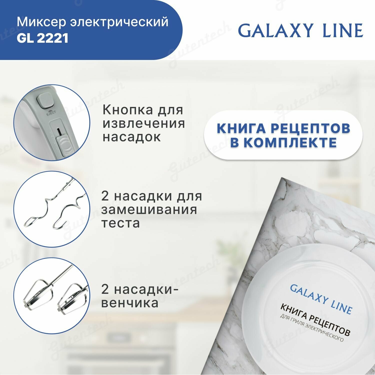 Купить Электрический миксер GALAXY LINE GL2221 / 5 скоростей / венчики и насадки для теста в комплекте