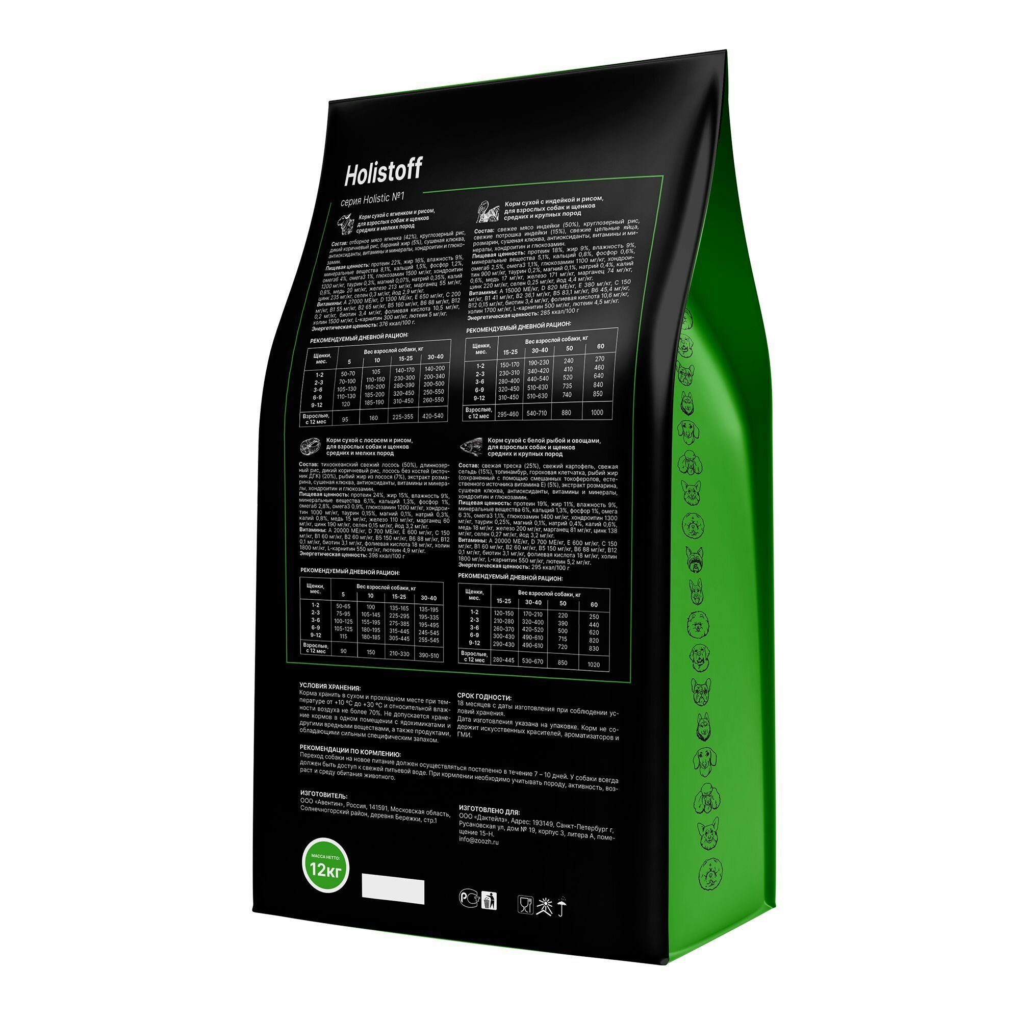 Купить Cухой корм для взрослых собак и щенков средних и крупных пород с белой рыбой и овощами Holistoff, 12 кг.