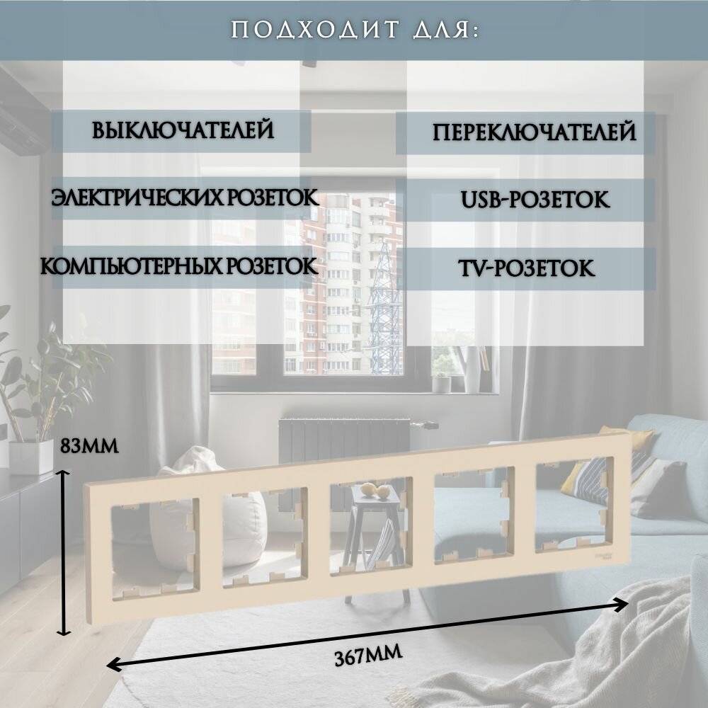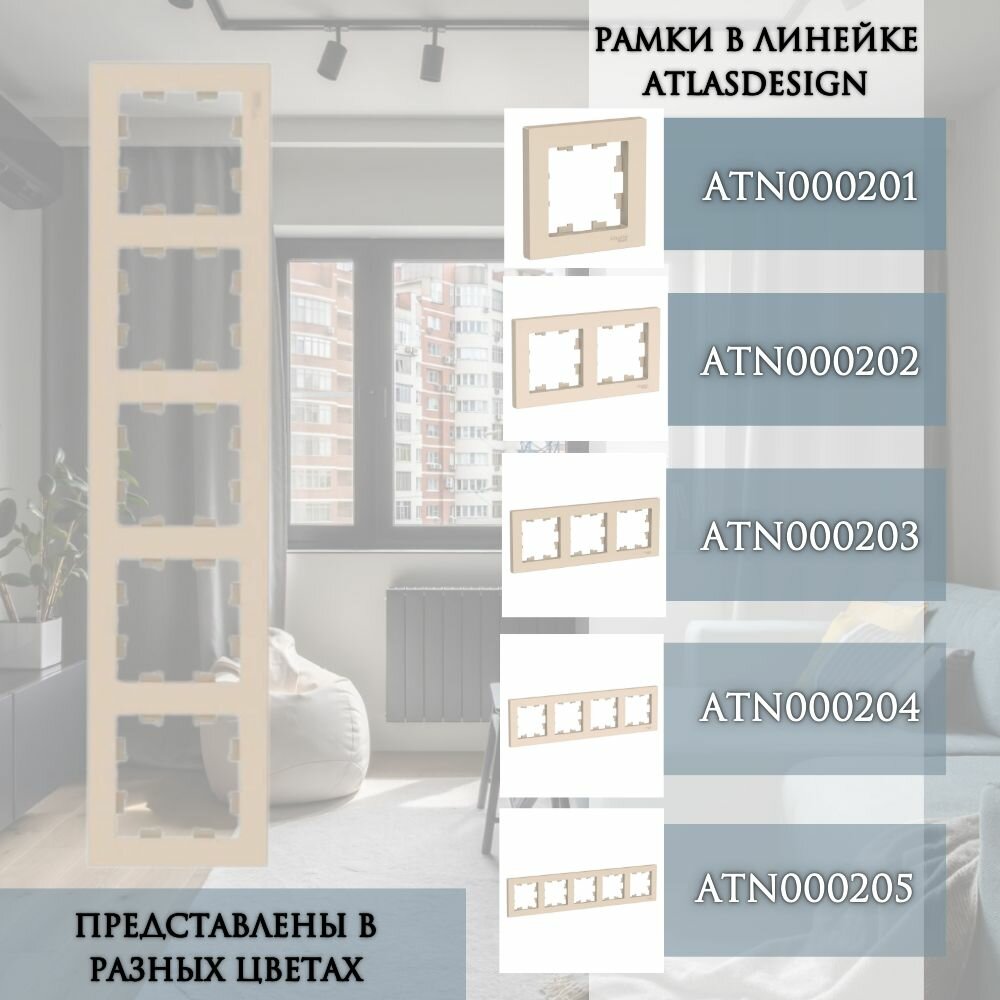СохранитьРамка 5-постовая для розеток и выключателей Бежевый AtlasDesign (Атлас Дизайн) Schneider Electric ATN000205 1шт интересное: