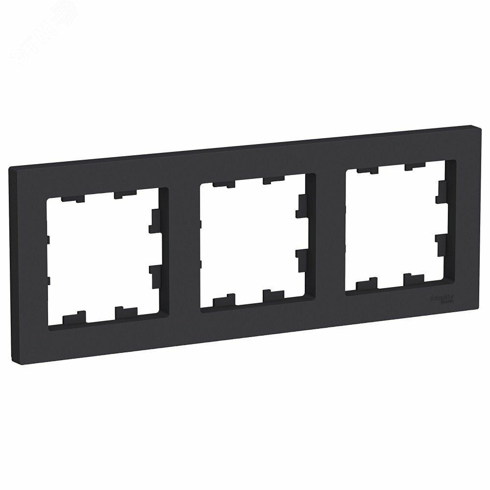 Рамка 3-постовая для розеток и выключателей Черная (Карбон) AtlasDesign (Атлас Дизайн) Schneider Electric ATN001003 7шт