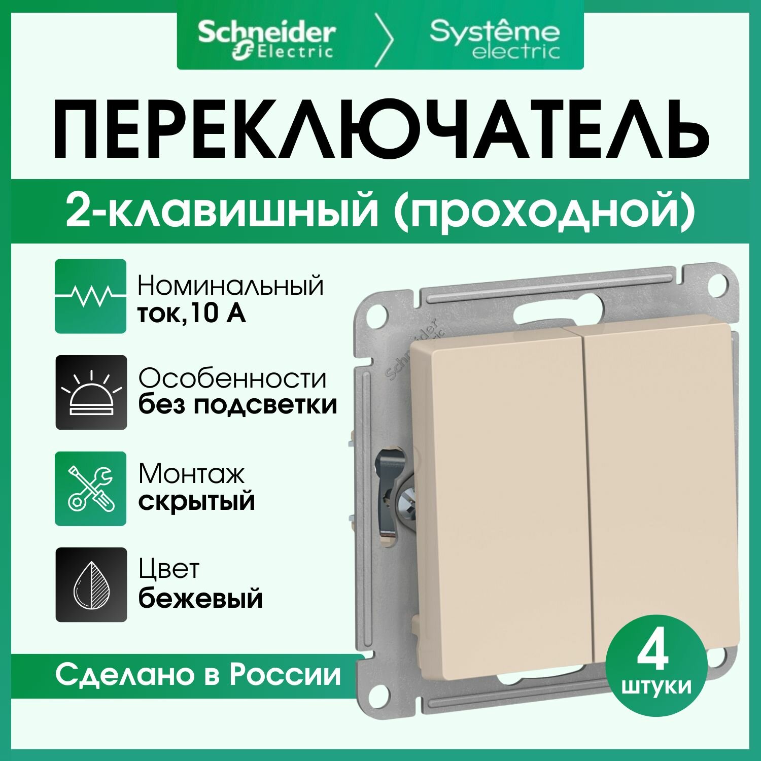 Купить Переключатель двухклавишный (проходной) Schneider Electric Atlas Design бежевый ATN000265 4 шт