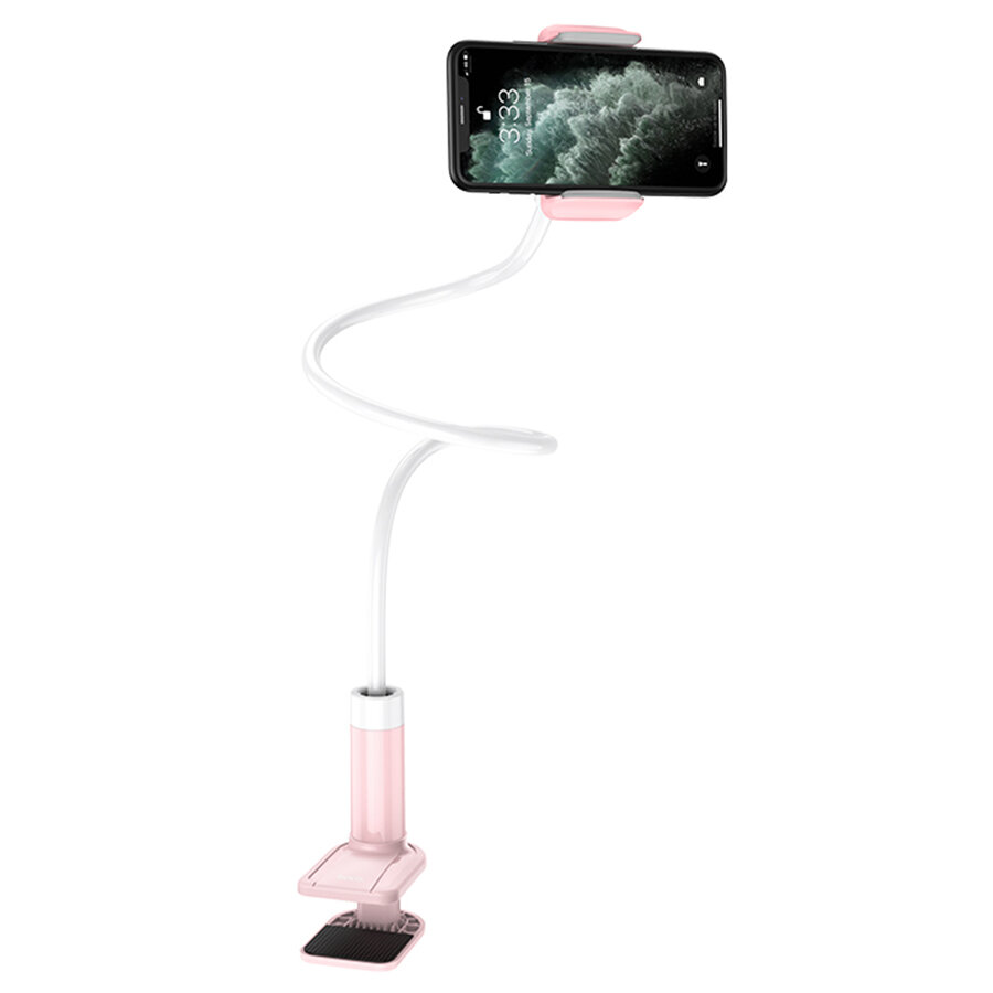 Держатель универсальный настольный HOCO PH23, розовый с белой вставкой,зажим для смартофона 4,5-6,5