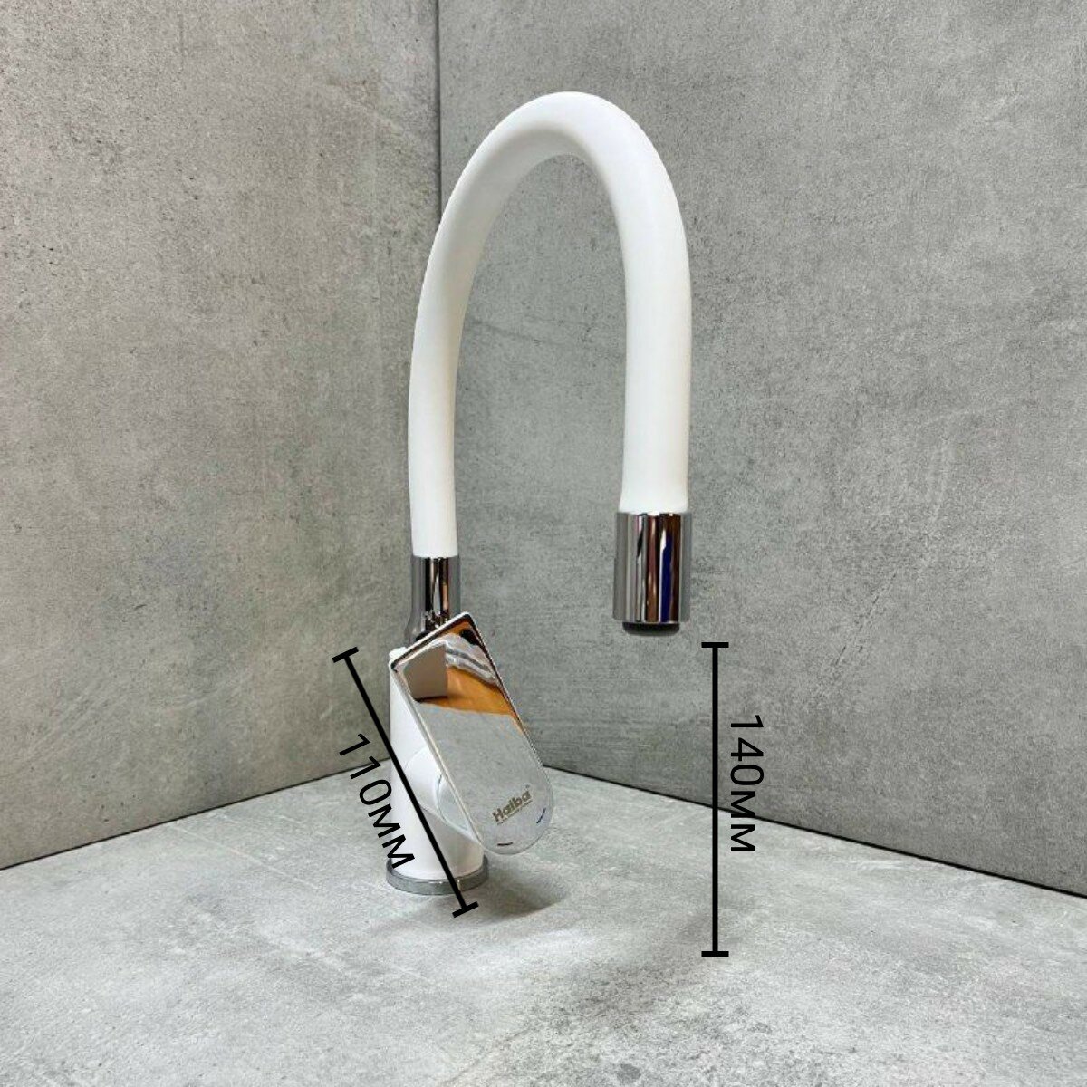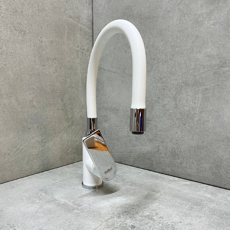 Смеситель для кухни с гибким поворотным силиконовым изливом, белый/хромированный, HAIBA HB73505-8