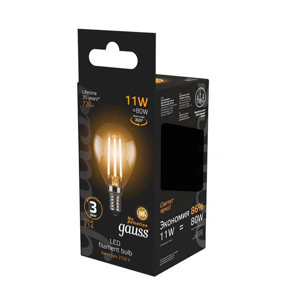 Купить Gauss Лампа LED Filament Шар E14 11W 720lm 2700K SQ105801111