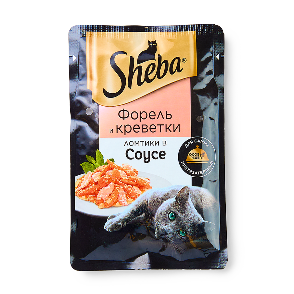 Корм влажный для кошек Sheba, форель и креветки, ломтики в соусе, 75 г