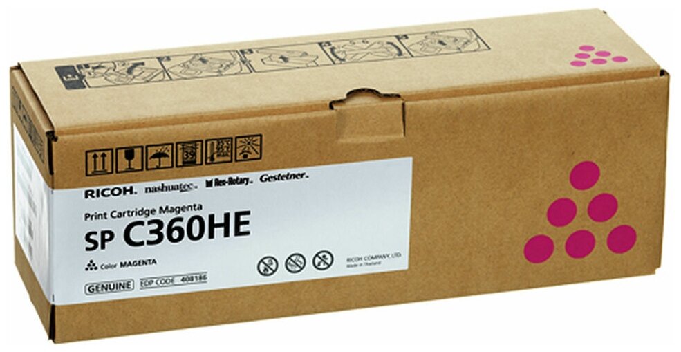Ricoh Расходные материалы Картридж SP C360HE малиновый SP C360DNw SP C360SNw SP C360SFNw SP C361SFNw, 6000 страниц 408186