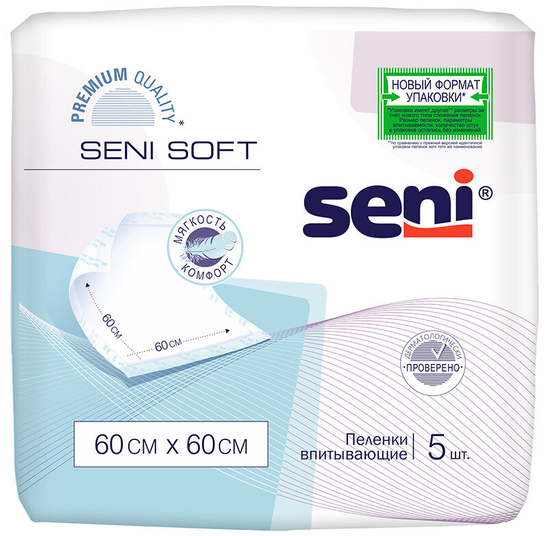 Seni Soft / Сени Софт - одноразовые впитывающие пеленки, 60x60 см, 5 шт.