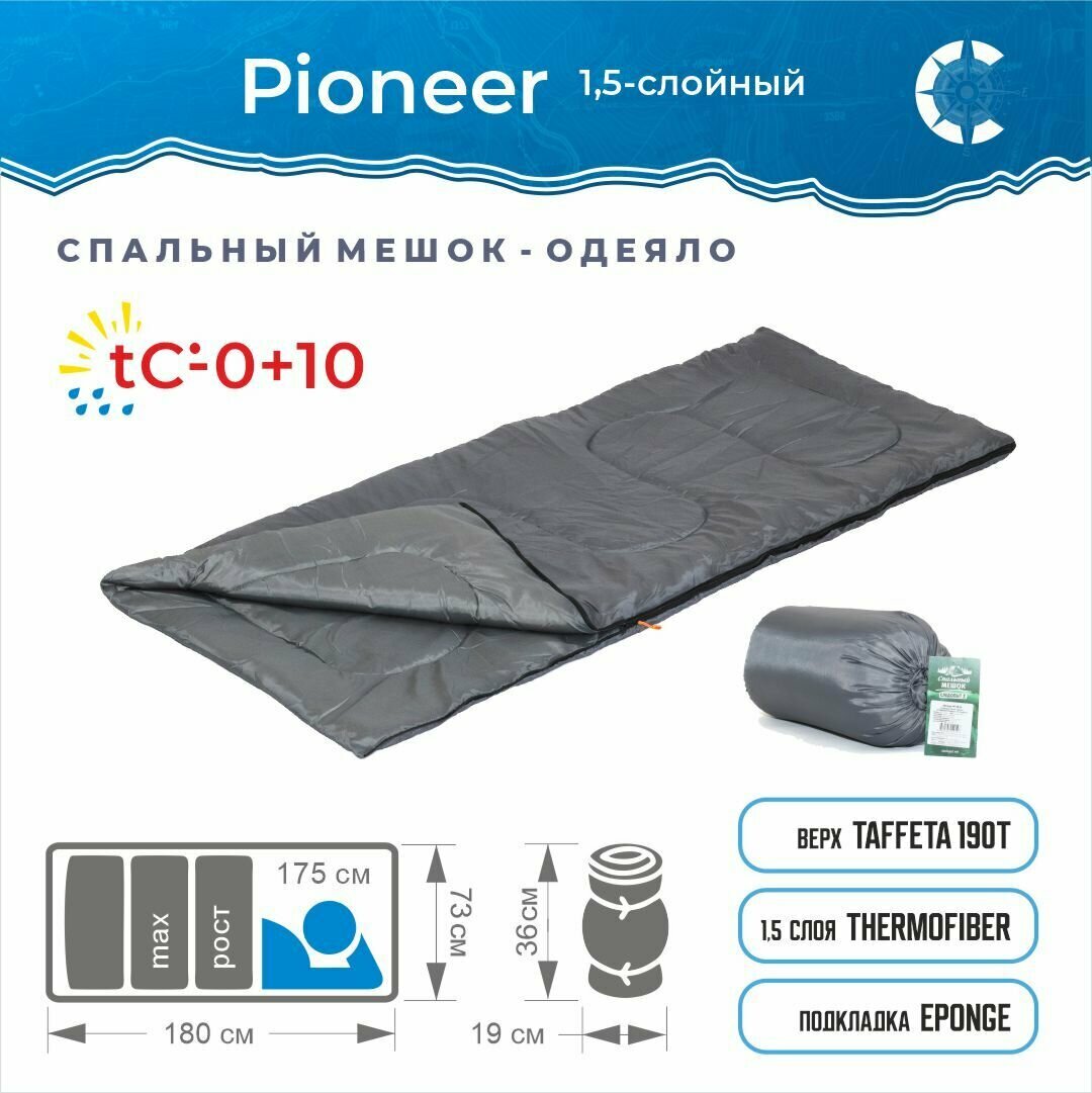 PF-SB-38 Спальный мешок-одеяло "следопыт - Pioneer", 180х73 см, до +10С, 1,5 х слойный, цв.темно-серый