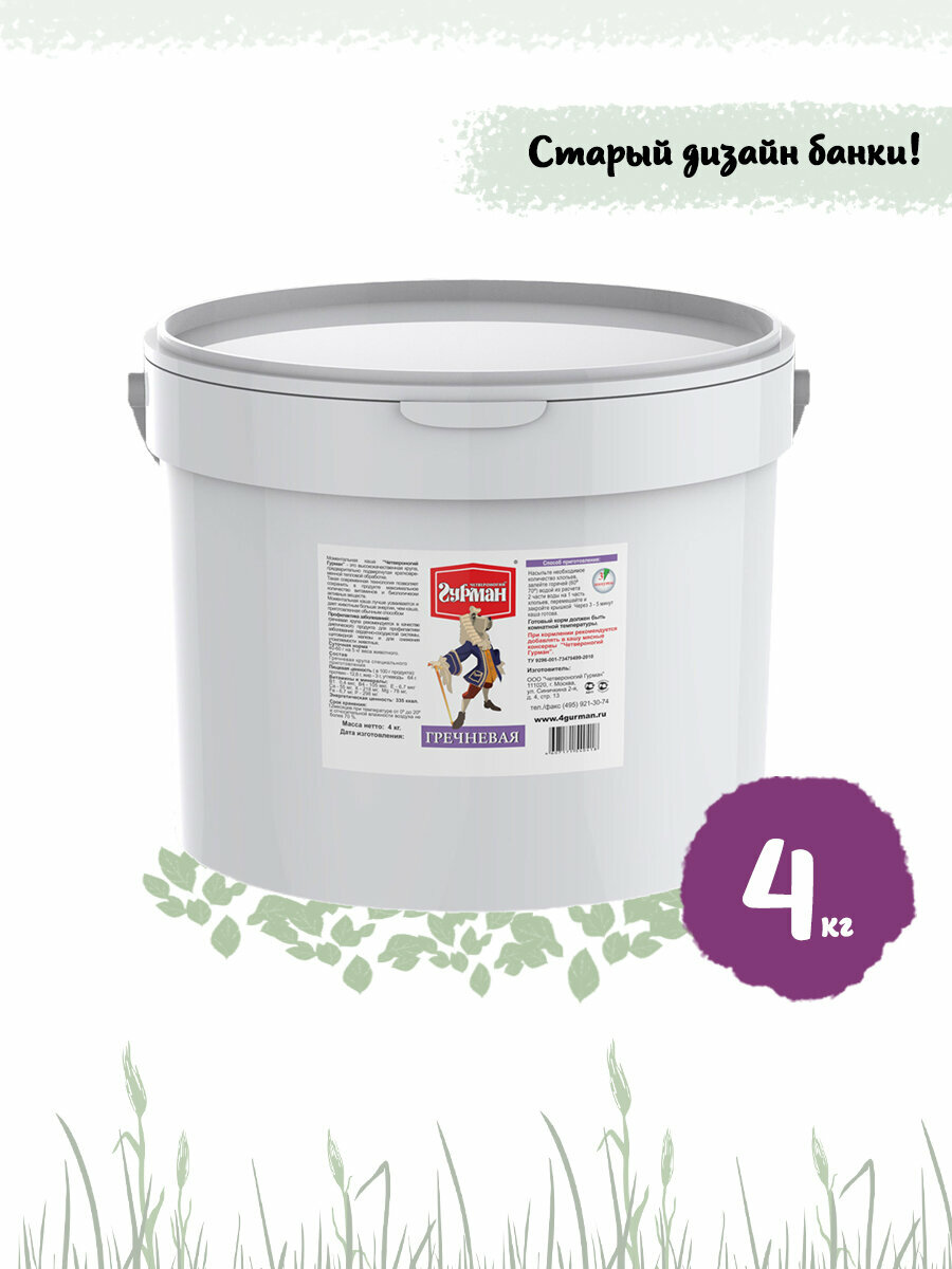 Четвероногий гурман каша для взрослых собак Гречневая (4 кг)