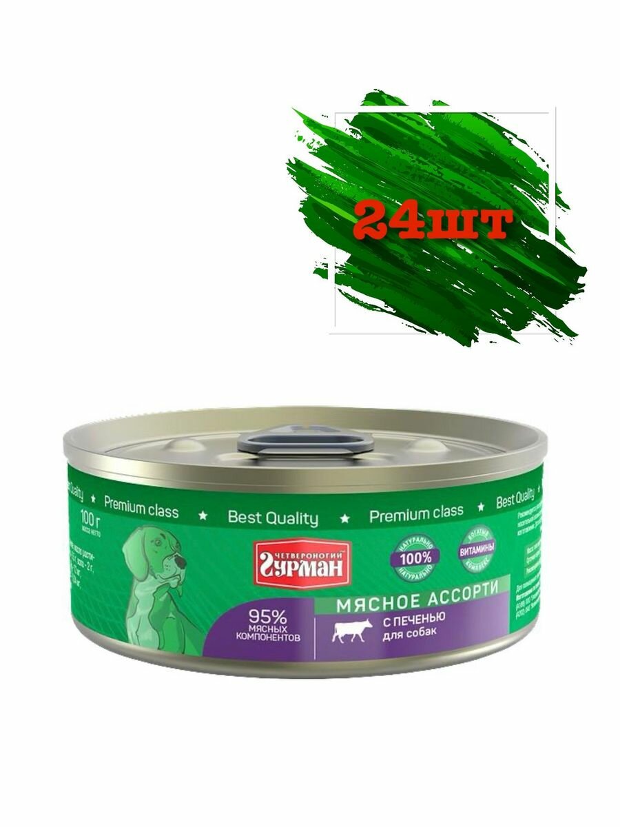 Купить Четвероногий Гурман консервы для собак Мясное ассорти с Печенью 100г (24 штуки)