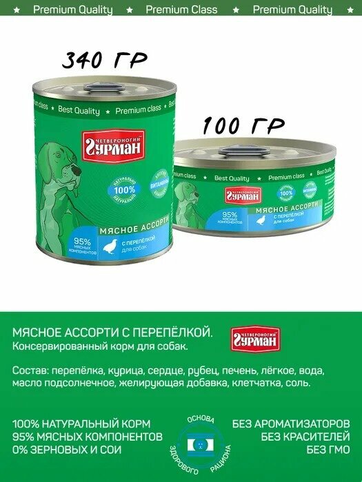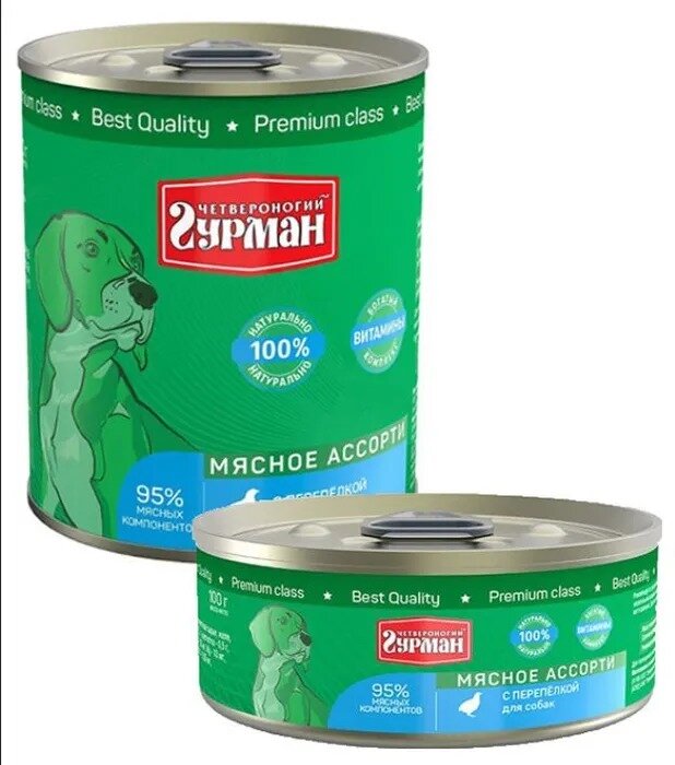 Четвероногий Гурман Корм консервированный для собак Мясное ассорти с Перепелкой, 100 г, 6 шт