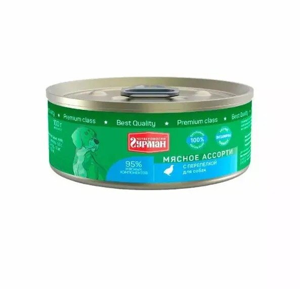 Купить Четвероногий гурман Консервы для собак Мясное ассорти с перепелкой, 100 г, 24 шт