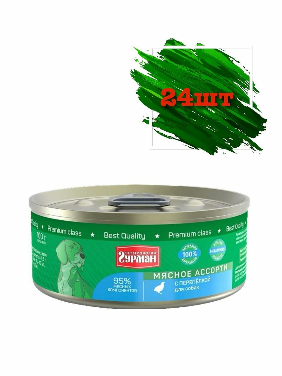 Корм Четвероногий гурман Мясное ассорти (консерв.) для собак, с перепелкой, 100 г x 24 шт