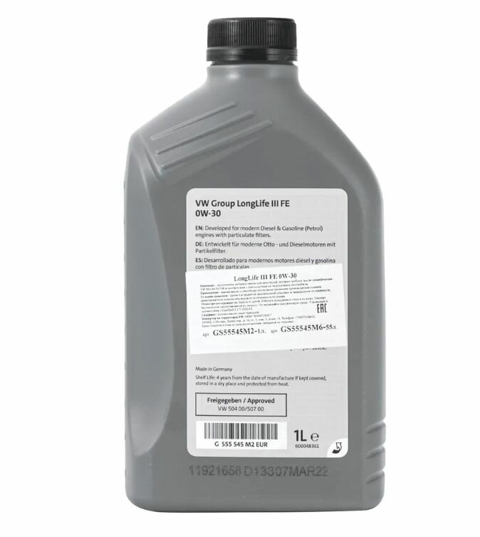 VAG GS55545M2 Масло моторное синтетическое Longlife III FE 0W-30 504 00/507 00, 1л 1шт